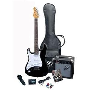 This complete package includes anything you need: an excellent guitar; a small, portable amp that delivers big sound; an instructional DVD (note that DVD shows a right handed player); a bag to guard your guitar when you might be not playing; a strap to help you you possess your instrument; a 10' cable to connect your guitar towards the amp; along with a guitar tuner to help keep you in tune! This guitar is ideal for a whole lot of musical styles including rock, jazz, blues, and Christian. The dual cutaway shaped body allows access to the highest frets, along with the contoured body helps it be comfortable to learn for hours. The solid alder wood provides superior sound. Die cast chrome tuners put in a touch of class. Three single coil pickups, one volume and 2 tone controls, along with a five way pickup selector switch create all of today's great sounds. Vintage fulcrum bridge with six adjustable saddles. Maple neck adds stability and is built with a truss rod. (A truss rod is surely an adjustable neck reinforcement designed to face up to the forward bending force in the high tension of steel strings, and is found in the finest of electric guitars.) Rosewood fretboard with 21 jumbo frets. Guitar weighs only 8.5 pounds. Overall length is 39", like the strap button. Scale length is 25.5". Width in the widest point is 13". Width of the neck at the nut is 1 5/8", and on the 21st fret it really is 2 1/8". Body thickness is 1 3/4". The amp provides 10 watts of power by having a engineered 5.5" speaker. It features a Master Volume Control. Both Band Equalizer allows one to control the bass and treble independently. Headphone jack keeps the household sane as you can practice silently. Amp weighs only 6.5lbs. It is 9 3/4" wide x 10 5/8" high x 5" deep. Enjoy!