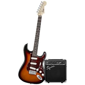 This set includes a great-sounding, sweet-looking and easy-playing Squier SE Special guitar with three single-coil pickups; plug it right in the included 10-watt Squier SP-10 amp with headphone jack. Accessories feature an instructional DVD, a digital tuner, guitar strap, gig bag, guitar cable, guitar stand and picks—everything you have to Stop Dreaming and Start Playing!