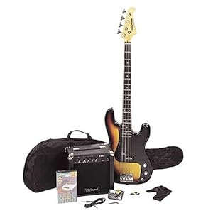 Get anything you must play the bass guitar with this particular special package from Silvertone, including the LB11 electric bass which has a sunburst coloring, 20-watt amplifier, padded gig bag, and instructional DVD. The LB11 four-string Revolver bass guitar has a traditional precision-style neck, body, and pickups that offer comfortable balance, warm resonance, and fat tone. The Revolver's stripped-down controls let you dial-up some nice sounds with no unnecessary complications. Use the amount knob to adjust the quantity of signal sent out of your bass, along with the tone knob to change large of this signal. Other features incorporate a 34-inch long scale, 20 fret maple neck with rosewood fretboard, chrome die-cast enclosed tuning machines, and fully adjustable chrome bridge.