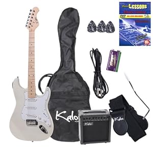 Includes: Gigbag, 15-W Amp, 3 picks, strap, amp cable, 9-volt battery, Tremolo arm, and DVD Lesson.